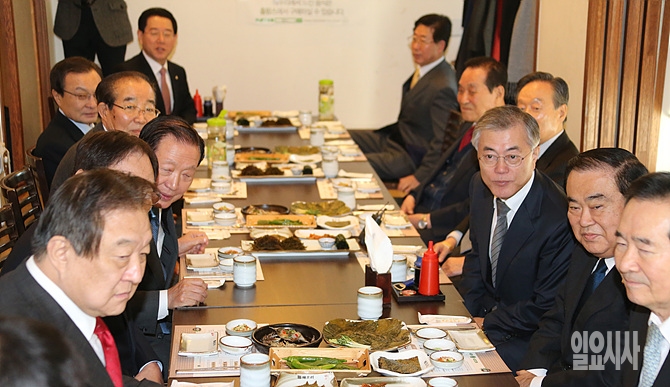 12일, 서울 여의도 한 모처의 중식당에서 새정치민주연합 문재인 대표를 비롯, 김원기·정대철·이해찬·정세균 등 상임고문단이 참석한 가운데 오찬이 열리고 있다. (현장풀)