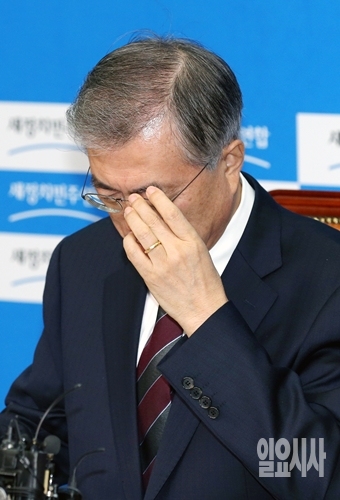 새정치민주연합 문재인 대표가 16일 오전 서울 여의도 국회에서 열린 당 최고위원회의에 참석해 안경을 고쳐쓰고 있다.