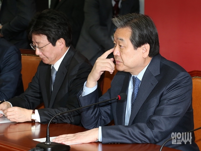 김무성 새누리당 대표가 16일 오전 서울 여의도 국회에서 열린 최고위원회의에 참석해 눈을 긁적이고 있다.