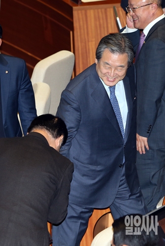 김무성 새누리당 대표가 16일 오후 국회에서 열린 본회의에서 이완구 국무총리 후보자 임명동의안 표결을 마치고 동료의원들과 악수를 하고 있다.