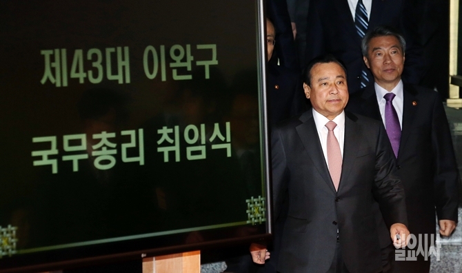 이완구 신임 국무총리가 17일 오후 세종로 정부서울청사에서 열린 '제43대 국무총리 취임식'에 입장하고 있다.