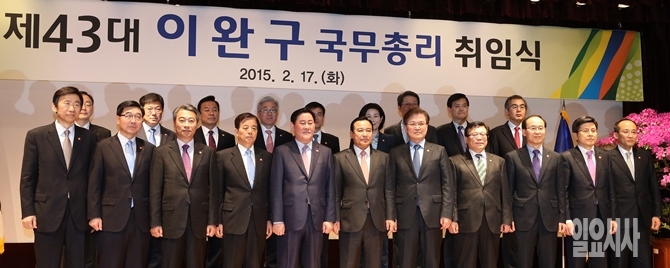 17일 오후 세종로 정부서울청사에서 열린 '제43대 국무총리 취임식'에 서 이완구 신임 국무총리와 각 부서장관들과 기념촬영을 하고 있다.