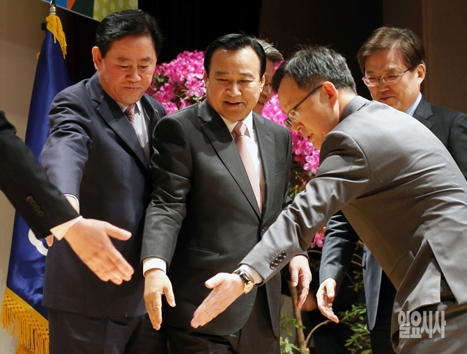[포토] 이완구 총리 취임식, '가운데로 오시죠'