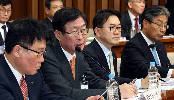 23일, 서울 여의도 국회에서 열린 해외자원개발 진상규명을 위한 국정조사특별위원회 도중 조환익 한국전력공사 사장이 위원들의 질문에 답변하고 있다.