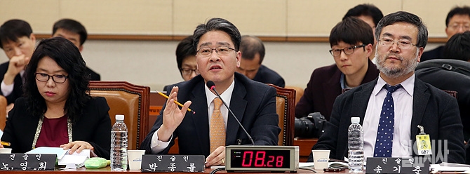 23일, 서울 여의도 국회 법제사법우원회 회의실에서 '부정청탁 및 금품 등 수수금지법 공청회'가 열리고 있는 가운데, 박종률 한국기자협회 회장이 진술인으로 출석해 발언하고 있다.
