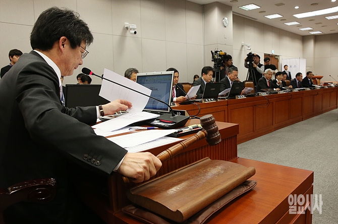 23일, 서울 여의도 국회 운영위원회 회의실에서 유승민 운영위원장이 안건들을 상정시키고 있다.
