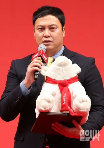 24일 오전 서울 소공동 웨스틴조선호텔에서 열린 ‘제20회 코카콜라 체육대상’ 시상식에서 이운재 코치가 우수지도상을 수상한 이광종 전 올림픽 축구대표팀 감독 대리수상을 한 후 인사말을 하고 있다. 이광종 전 감독은 급성백혈병으로 투병중이다.