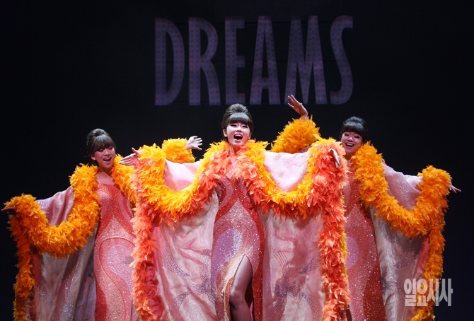 25일 오후 서울 송파구 잠실동 샤롯데씨어터에서 열린 뮤지컬 <드림걸즈> 프레스콜에서 출연진이 화려한 공연을 펼치고 있다.