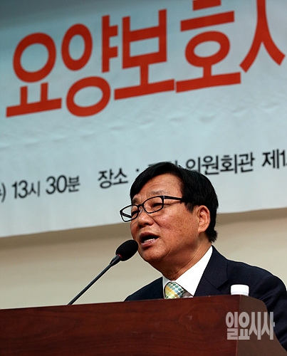 25일, 서울 여의도 국회 의원회관에서 새누리당 이종진 의원 주최로 열린 '요양보호사 복지수준향상 토론회'에서 이 의원이 개회사를 하고 있다.