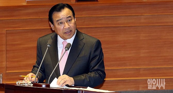 25일, 서울 여의도 국회 본회의장에 열린 첫날 대정부질문에서 이완구 국무총리가 의원들의 질의에 답변하고 있다.