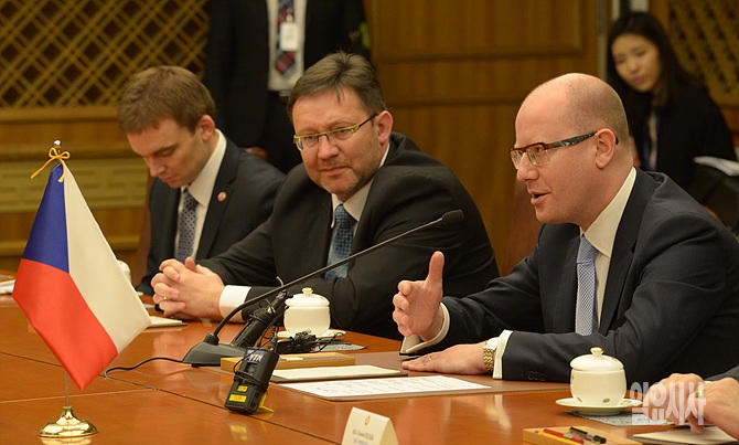 25일, 서울 여의도 국회 정의화 국회의장을 접견한 보후슬라프 소보트카 체코 총리가 정 의장과 환담을 나누고 있다.