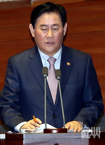 26일, 서울 여의도 국회 본회의장에서 최경환 경제부총리 겸 기획재정부장관이 국회 이틀째 경제분야 대정부질문에서 한 의원의 질문에 답변하고 있다.