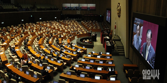 이완구 국무총리가 26일 국회 본회의에서 열린 경제 분야 대정부질문에서 의원들의 질의에 답변하고 있다.