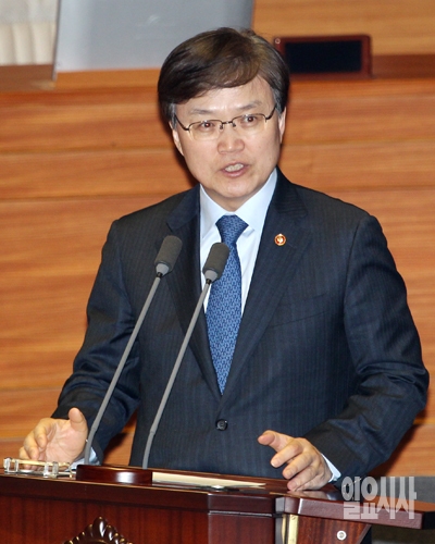 최양희 미래창조과학부 장관이 26일 국회 본회의에서 열린 경제 분야 대정부질문에서 의원들의 질의에 답변하고 있다.