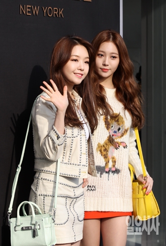 걸스데이 민아, 유라가 27일 오후 서울 강남구 압구정동 갤러리아 백화점 웨스트에서 열린 '코치' 팝업스토어 오픈행사에 참석해 포즈를 취하고 있다.