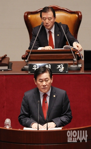 최경환 경제부총리 겸 기획재정부 장관이 2일 서울 여의도 국회에서 열린 예산결산특별위원회 전체회의에 출석해 2015년도 예산 및 기금운용계획 집행지침과 예산배정 및 자금계획을 보고하고 있다.
