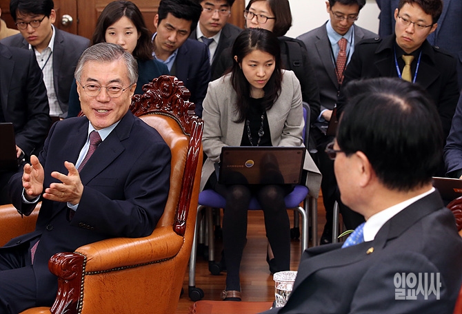 2일 오전, 서울 여의도 국회 의장집무실에서 새정치민주연합 문재인 대표가 정의화 국회의장(사진 오른쪽)과 환담을 나누고 있다.