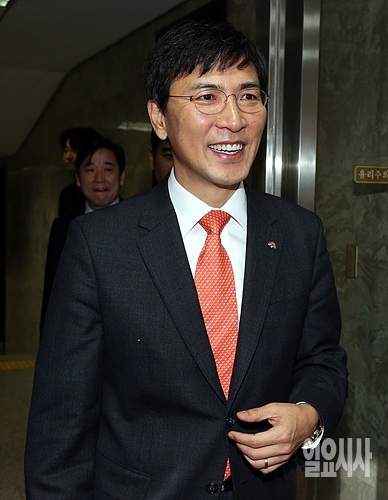 2일 오전, 서울 여의도 국회실에서 열린 새정치민주연합 의원총회에 참석하기 위해 안희정 충남도지사가 의총장 안으로 입장하고 있다.