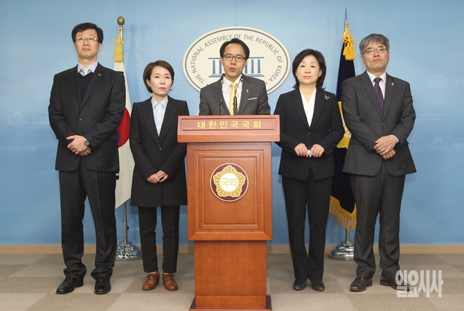 4·29 재보궐선거 관악을에 출마하는 정의당 이동영 후보(가운데)가 3일 오전 서울 여의도 국회 정론관에서 출마기자회견을 하고 있다.