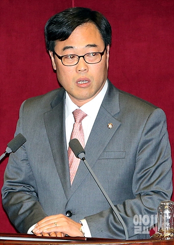 3일, 서울 여의도 국회 본회의장에서 열린 본회의 직전, 새정치민주연합 김기식 의원이 발언하고 있다.