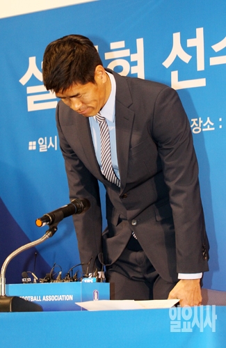 축구선수 설기현이 4일 오전 서울 신문로 축구회관에서 열린 자신의 선수 은퇴 기자회견에서 팬들에게 감사 인사를 하고 있다. 현역선수에서 은퇴하는 설기현은 성균관대 축구부 감독으로 새인생을 시작할 예정이다.