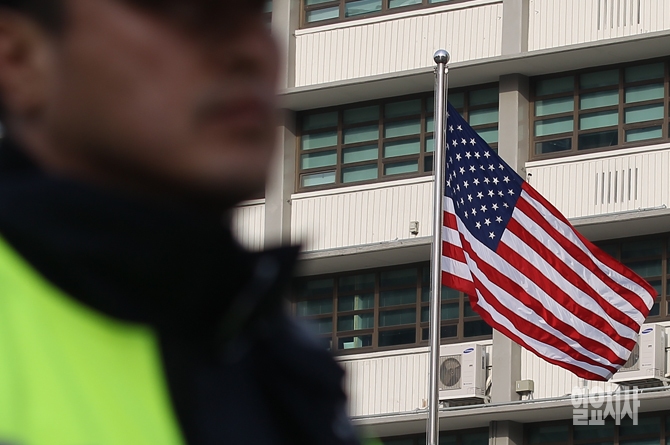 [포토] 리퍼트 대사 피습, 미국대사관 경계강화