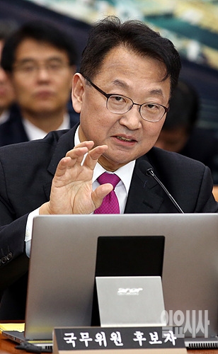 9일, 서울 여의도 국회에서 유일호 국토교통부장관 후보자에 대한 인사청문화에서 유 후보자가 청문위원들의 질의에 답변하고 있다.