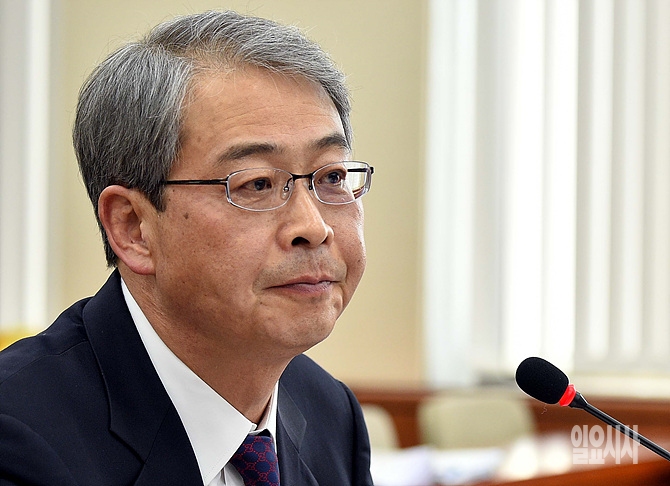 10일 오전, 서울 여의도 국회에서 열린 임종룡 금융위원장 후보자에 대한 인사청문회 도중 임 후보자가 청문위원들의 질의에 난처한 표정을 짓고 있다.