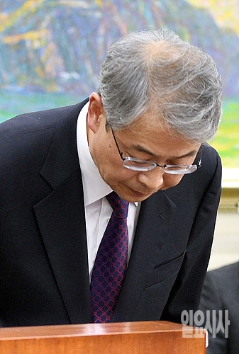10일 오전, 서울 여의도 국회에서 열린 임종룡 금융위원장 후보자에 대한 인사청문회 직전, 임 후보자가 인사청문위원들을 향해 인사를 하고 있다.