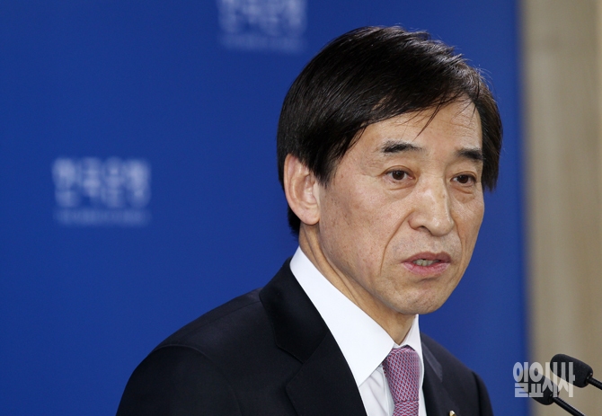 이주열 한국은행 총재가 12일 오전 서울 남대문로 한국은행 본점에서 통화정책방향 관련 기자간담회를 열고 정책방향 설명을 하고 있다. 한국은행은 이날 기준금리를 기존 2.00%에서 1.75%로 0.25%p 하향조정해 사상 처음으로 기준금리 1% 시대를 맞았다.