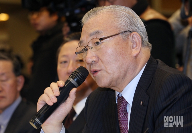 김인호 무역협회 회장이 13일 오후 서울 남대문로 대한상공회의소에서 열린 '경제장관·경제단체장 간담회'에 참석해 발언을 하고 있다.