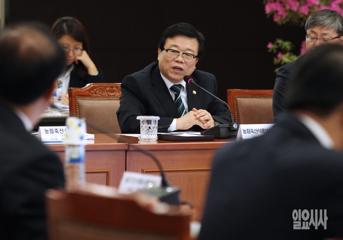 이동필 농림축산식품부 장관이 13일 오후 서울 중구 충정로 농협중앙회 본점에서 열린 '2015년도 농림축산식품부 장관 기관합동 업무보고회'에 참석해 인사말을 하고 있다.