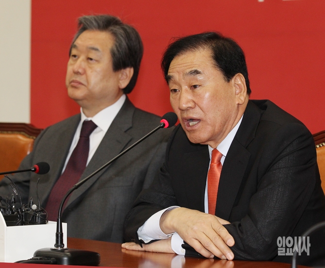 이재오 새누리당 의원이 18일 오전 서울 여의도 국회에서 열린 최고중진연석회의에서 발언하고 있다.