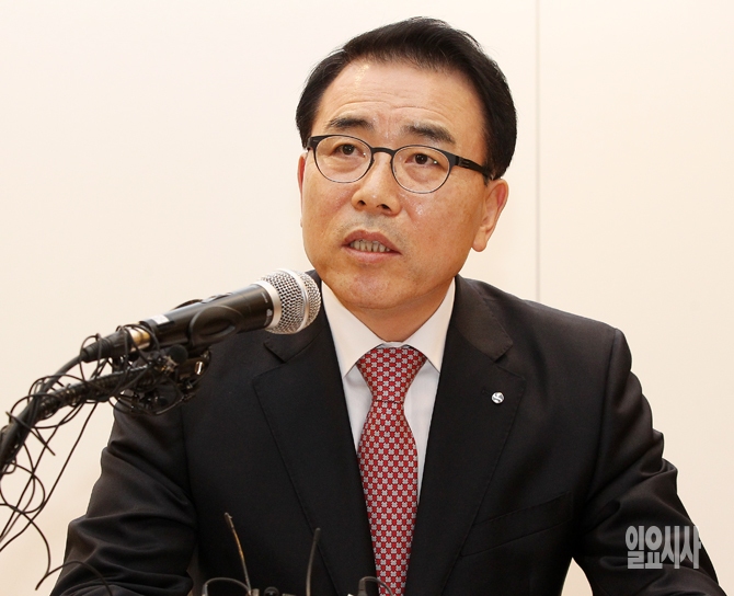 신한은행 조용병 신임 은행장이 18일 오후 서울 중구 태평로 신한은행 본점에서 열린 취임 기자간담회에서 취임 소감을 밝히고 있다.
