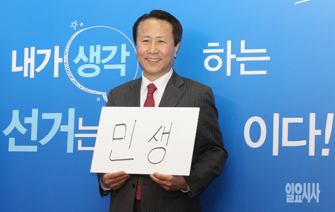 19일 오전 서울 여의도 국회 새정치민주연합 대표회의실에서 열린 '4.29 재보궐선거 후보자 공천장 수여식'에서 조영택 광주 서구을 후보자가 4·29 재보선에 대한 생각을 쓴 피켓을 들고 있다.