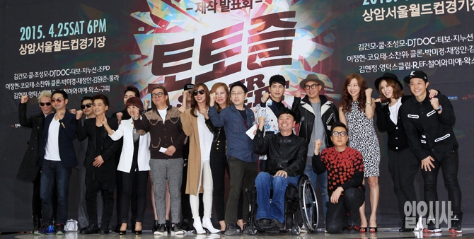 19일 오후 서울 영등포 타임스퀘어에서 열린 '토토즐 슈퍼콘서트' 제작발표회에서 출연가수들이 포즈를 취하고 있다.