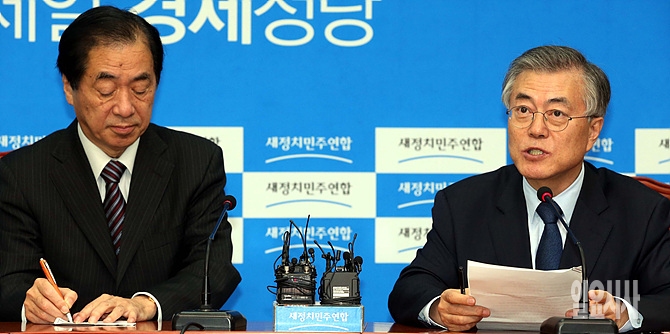 19일, 간 아오토 전 일본총리가 서울 여의도 국회 새정치민주연합 문재인 대표를 예방 자리에서 문 대표의 발언내용들을 메모하고 있다.