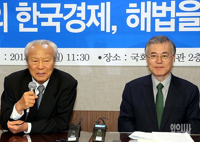 23일, 서울 여의도 국회의원회관 의원식당에서 '위기의 한국경제, 해법을 말하다'를 주제로 경제정당의 길-경제석학과의 간담회가 열린 가운데, 박승 전 한국은행 총재가 발언하고 있다.
