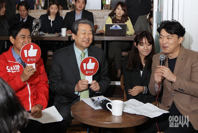 김무성 새누리당 대표가 23일 오후 서울 관악구 대학동에서 원룸·고시촌을 방문한 뒤 청년주거 문제를 주제로 타운홀 미팅을 하고 있다.