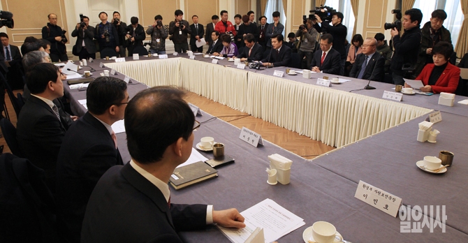 원유철 새누리당 정책위의장과 박인용 국민안전처 장관, 김종덕 문화체육관광부 장관 등이 참석한 가운데 24일 오전 서울 여의도 국회에서 강화도 캠핑장 화재사고 관련 당정 긴급협의회가 열리고 있다.