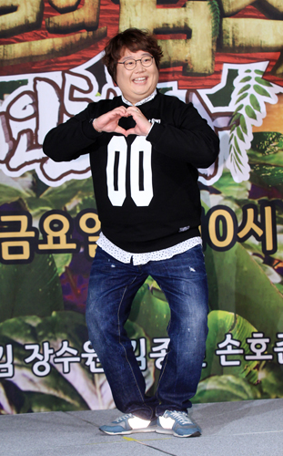 개그맨 류담이 26일 오전 서울 여의도 마리나에서 열린 SBS 예능프로그램 <정글의 법칙 in 인도차이나> 제작발표회에서 포즈를 취하고 있다.