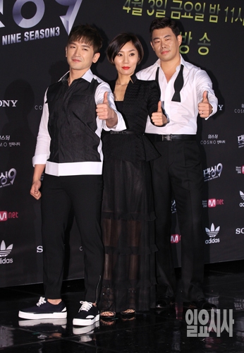 이민우, 우현영, 박지우(왼쪽부터)로 구성된 '레드윙즈'팀 마스터가 26일 오후 서울 마포구 상암동 E&M센터에서 열린 Mnet <댄싱9 시즌3 올스타전> 제작발표회에서 포즈를 취하고 있다.
