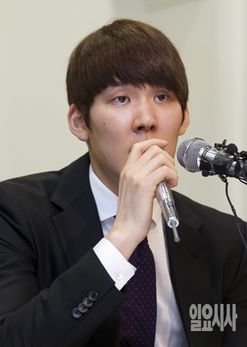 수영선수 박태환이 27일 오후 서울 송파구 잠실관광호텔에서 기자회견을 열고 약물징계 관련 입장을 발표하고 있다.