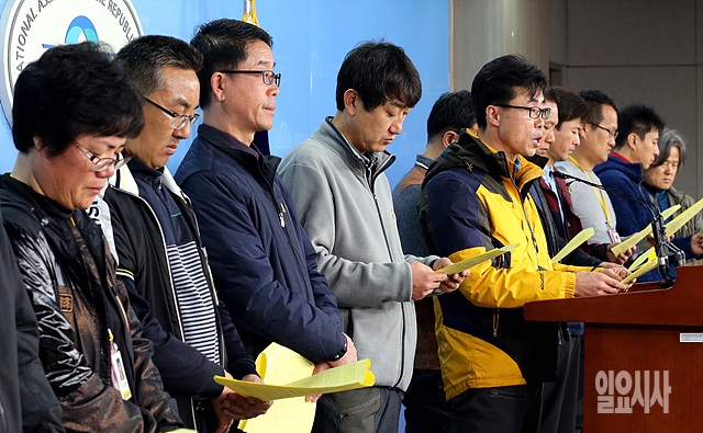 세월호1주기를 앞둔 30일, 세월호 유가족들이 서울 여의도 국회 정론관에서 기자회견을 갖고 있다.
