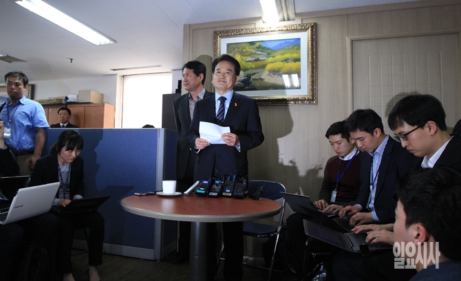 국민모임 정동영 전 의원이 30일 오전 서울 여의도 자신의 사무실에서 기자회견을 열고 4ㆍ29 재보선 출마선언을 하고 있다.