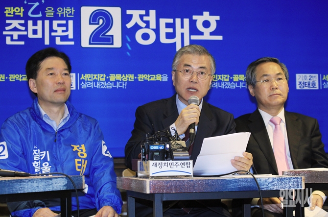 새정치민주연합 문재인 대표(가운데)가 30일 오전 서울 관악구 난곡로 난향꿈둥지에서 열린 현장최고위원회의에서 모두발언을 하고 있다.