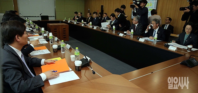 30일, 경기도 판교 테크노밸리에서 최경환 경제부총리, 유기준 해양수산부장관 등이 참석한 가운데 경제관련 장관회의가 열리고 있다.