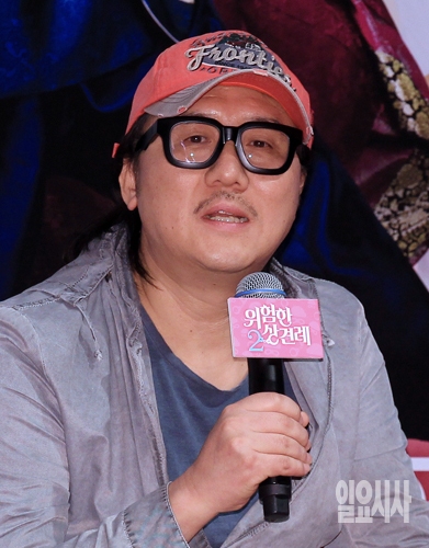 김진영 감독이 1일 오전 서울 광진구 자양동 롯데시네마 건대입구점에서 열린 영화 <위험한 상견례2> 제작발표회에서 취재진의 질문에 답하고 있다.