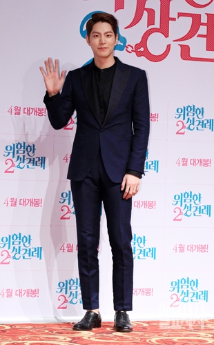 배우 홍종현이 1일 오전 서울 광진구 자양동 롯데시네마 건대점에서 열린 영화 <위험한 상견례2> 제작발표회에서 포즈를 취하고 있다.