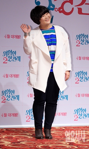 배우 김도연이 1일 오전 서울 광진구 자양동 롯데시네마 건대점에서 열린 영화 <위험한 상견례2> 제작발표회에서 포즈를 취하고 있다.